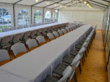 Bierzeltgarnitur / Festzeltgarnitur mit extra breiten Tischen.